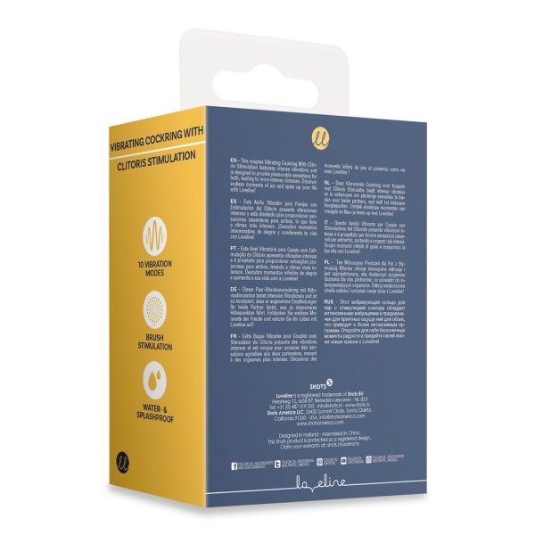 O anel vibratório LOVELINE para casais com estimulação clitoriana apresenta vibrações intensas e foi concebido para proporcionar sensações agradáveis a ambos os parceiros, com uma escova sensível que estimula os testículos e o clitóris ao mesmo tempo.
