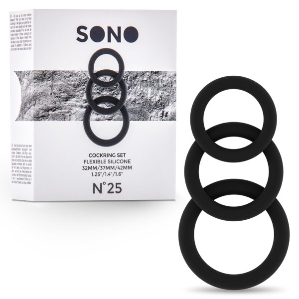 CONJUNTO DE ANÉIS PARA O PÉNIS SONO Nº25 COCKRING SET PRETO