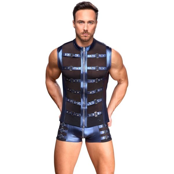 Os calções justos e realçados da NEK têm um fecho de correr sobre a bolsa almofadada. Os calções são feitos de material de aspeto mate azul metálico e têm tiras com tachas em ambos os lados.