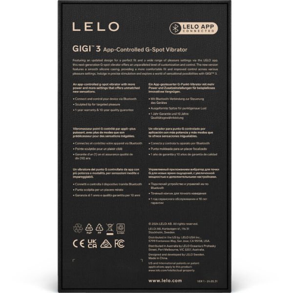 O estimulador do ponto G Gigi™ 3 é compatível com a aplicação Lelo, com a qual as utilizadoras podem desbloquear mais modos de prazer e experimentar diferentes intensidades até encontrarem o seu ponto ideal. Além de lhe oferecer uma maior variedade de opções quando joga com o seu Gigi™ 3, a aplicação Lelo proporciona-lhe muitas outras vantagens. É uma plataforma de bem-estar sexual multifuncional dedicada à sexualidade humana. Conta com mais de 4000 artigos, literatura erótica vívida e conselhos valiosos sobre relações.