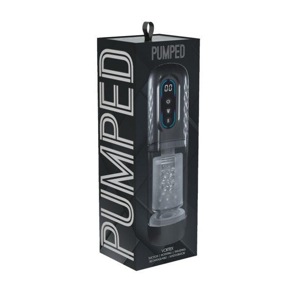 Masturbador Vortex com manga suave, vácuo potente e função de rotação interior.