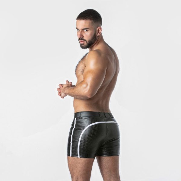 Mini calções em pele sintética perfurada com debrum em contraste