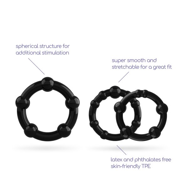 Intensifique as suas ereções e tenha mais stamina, estes três anéis podem ser usados em conjunto ou em separado. Experimente diferentes combinações e deixe que o firme aperto estimule os seus sentidos.