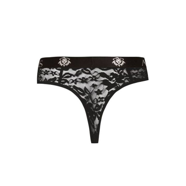 Tanga ROMANCE tamanho M, de renda preta delicada e com estampado floral.
